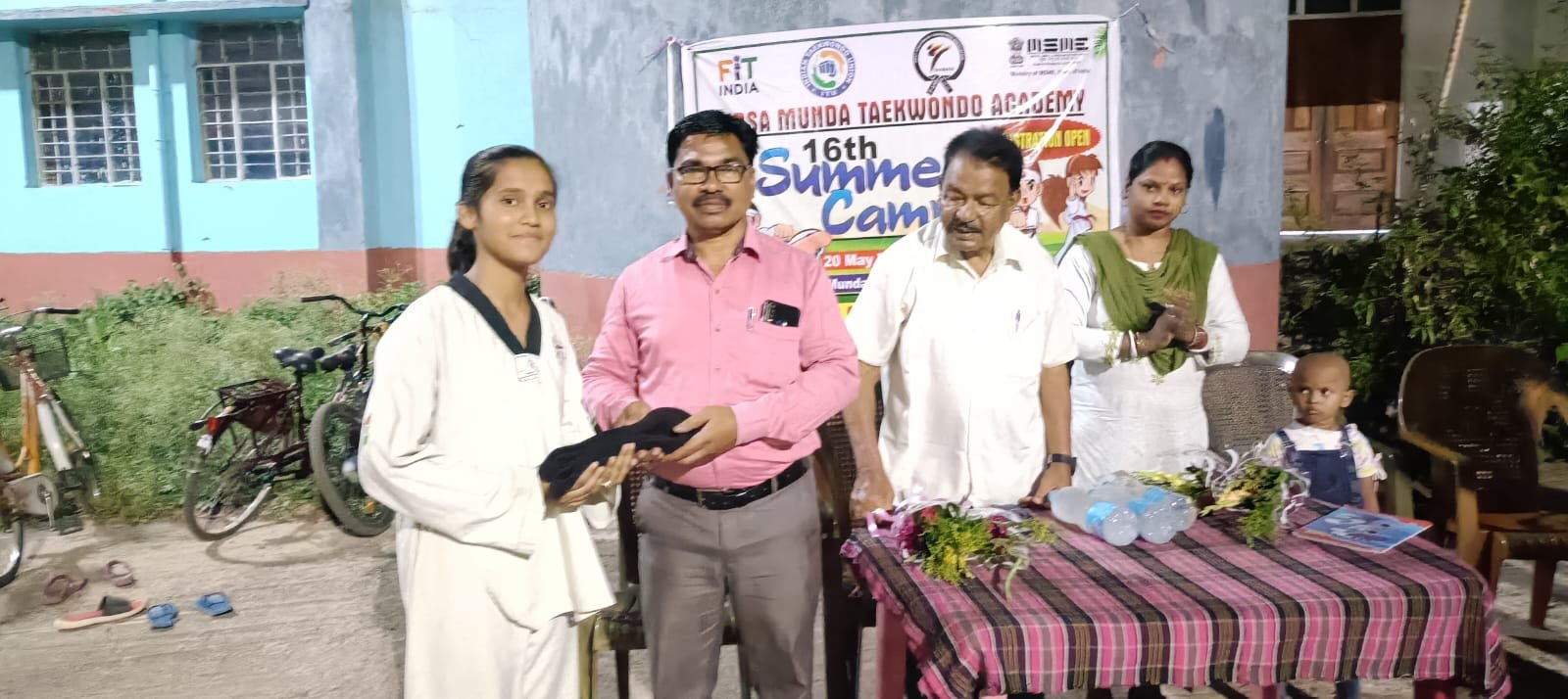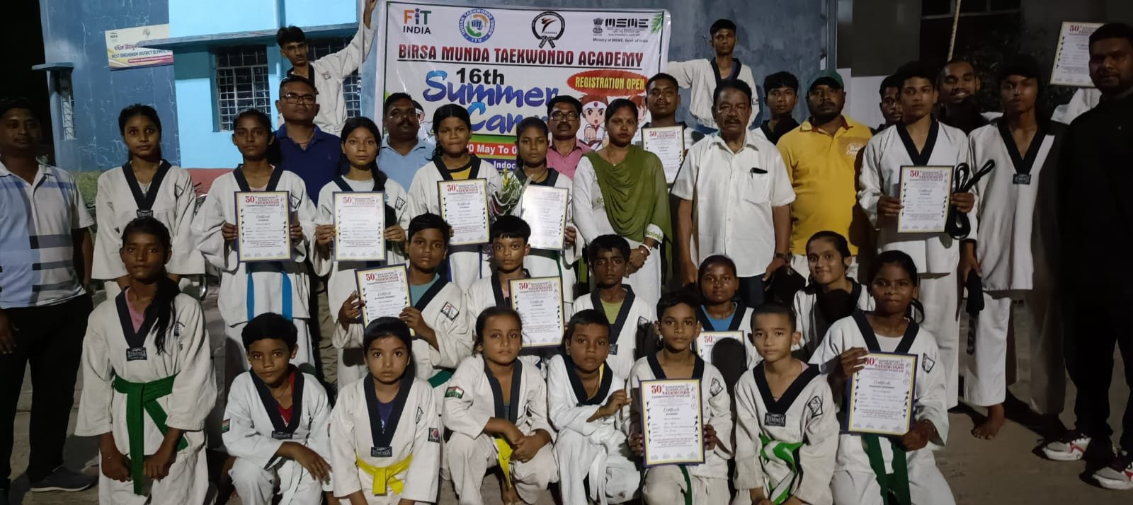 Chaibasa : बिरसा इंडोर स्टेडियम के परिसर में बिरसा ताइक्वांडो अकादमी के तत्वावधान में 16वीं समर कैंप की विधिवत शुरुआत की गई। जिसका उद्घाटन जिला परिषद सदस्य राजश्री सावैयां ने किया। इस अवसर पर खिलाड़ियों ने अतिथियों के समक्ष ताइक्वांडो के विभिन्न विधा का प्रदर्शन किया। इस अवसर पर अतिथियों ने ताइक्वांडो के ग्रेडिंग परीक्षा में सफल खिलाड़ियों पलक कुमारी, जुलियस आल्डा, चुंबरु बिरूवा, सौरभ नंदी एवं सन्नी कुमार को अतिथियों के हाथों बेल्ट प्रदान किया गया। साथ ही, खेल में उत्कृष्ट प्रदर्शन करने वाले खिलाड़ियों को प्रशस्ति-पत्र प्रदान किया गया।