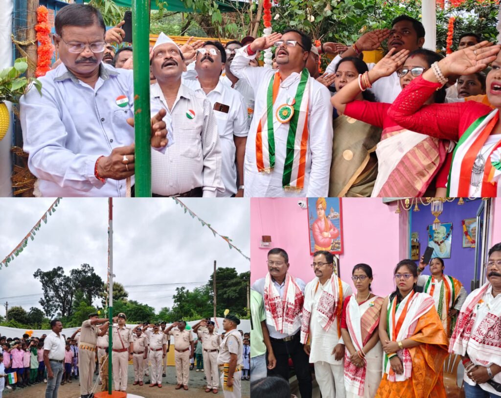 Gua (गुआ) : गुआ बड़ाजामदा व आसपास क्षेत्र में सरकारी व गैर सरकारी संस्थाओं में धूमधाम से 79वां स्वतंत्रता दिवस मनाया। इस दौरान गुवा थाना में थाना प्रभारी नितीश कुमार ने तिरंगे को सलामी दी, वहीं वन विभाग कार्यालय गुआ में वन क्षेत्र पदाधिकारी परमानंद रजक ने झंडे को सलामी दी. झारखंड मजदूर संघर्ष संघ कार्यालय में रामचंद्र तांती ने झंडोत्तोलन किया.