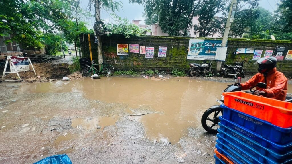 आदित्यपुर । आदित्यपुर नगर निगम क्षेत्र अंतर्गत वार्ड संख्या 19 की पान दुकान चौक से शिव मंदिर रोड तक की मुख्य सड़क इन दिनों तालाब में तब्दील हो चुकी है। जगह-जगह बने गहरे गड्ढे और जलजमाव ने राहगीरों की परेशानी बढ़ा दी है। खासकर पैदल चलने वाले और दोपहिया वाहन चालक रोजाना फिसल कर घायल हो रहे हैं।