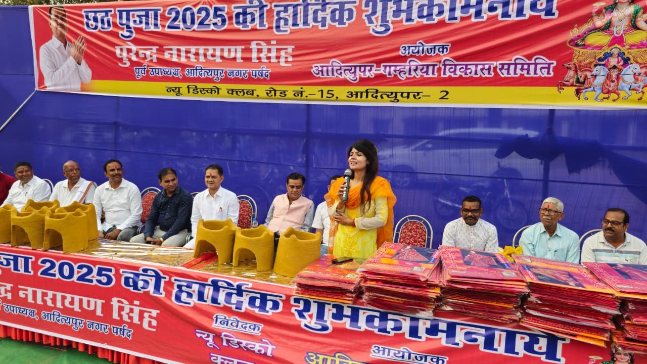 मुख्य अतिथि पारुल सिंह ने अपने संबोधन में कहा कि “छठ महापर्व के अवसर पर बीते 10 वर्षों से पुरेंद्र नारायण सिंह के नेतृत्व में आदित्यपुर विकास समिति द्वारा किया जा रहा यह कार्य सराहनीय है।” उन्होंने बताया कि नगर निगम द्वारा छठ घाटों तक जाने वाले मार्गों की मरम्मत, सफाई और लाइटिंग की व्यवस्था की जा रही है। साथ ही उन्होंने मंच से कंट्रोल रूम और अपना निजी नंबर जारी करते हुए कहा कि छठ पर्व से जुड़ी किसी भी समस्या के लिए लोग सीधे संपर्क कर सकते हैं।इससे पहले, सभी अतिथियों का स्वागत आदित्यपुर विकास समिति की ओर से शाल ओढ़ाकर और बुके देकर सम्मानित किया गया।
