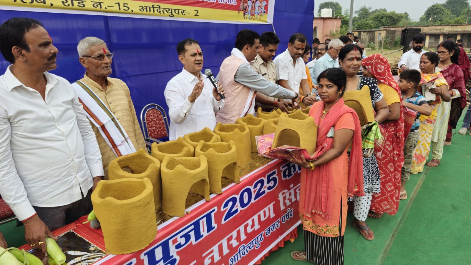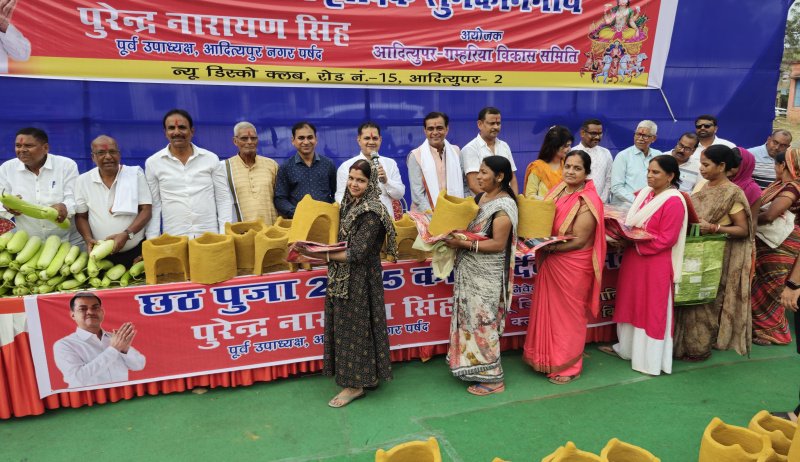 Adityapur: छठ महापर्व के अवसर पर आदित्यपुर नगर परिषद के पूर्व उपाध्यक्ष पुरेंद्र नारायण सिंह के नेतृत्व में शुक्रवार को वार्ड संख्या- 26,29, 32,34, एवं 35 की 1000 छठव्रती माताओं-बहनों के बीच पूजन सामग्री का भव्य वितरण कार्यक्रम आयोजित किया गया। यह कार्यक्रम आदित्यपुर-2 स्थित मार्ग संख्या- 15 मैदान में जन सहयोग से संपन्न हुआ, जहां छठव्रतियों को मिट्टी का चूल्हा, चुनरी साड़ी, लौकी और आम की लकड़ी सहित आवश्यक पूजन सामग्री कूपन प्रणाली के माध्यम से प्रदान की गई।