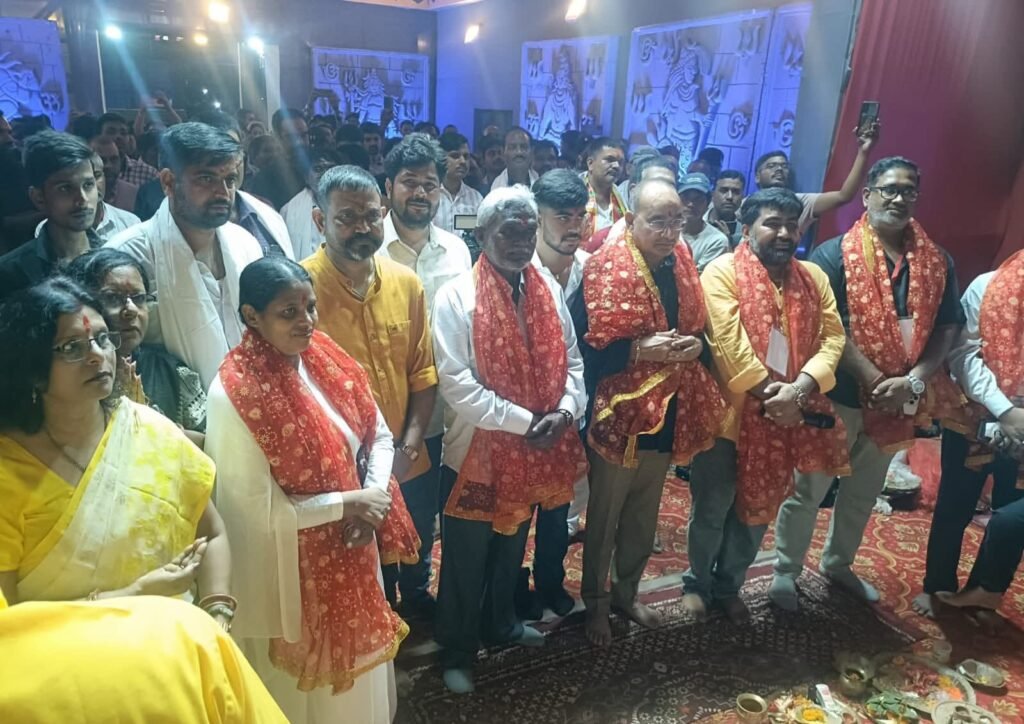 Adityapur:आदित्यपुर हरिओम नगर स्थित 6 एलएफ मैदान में इस वर्ष मां भवानी यूथ क्लब द्वारा भव्य दुर्गा पूजा पंडाल का निर्माण किया गया है। इस आकर्षक और सांस्कृतिक रूप से समृद्ध पंडाल का उद्घाटन झारखंड के पूर्व मुख्यमंत्री एवं वर्तमान विधायक श्री चंपई सोरेन ने शुक्रवार देर शाम फीता काटकर किया।