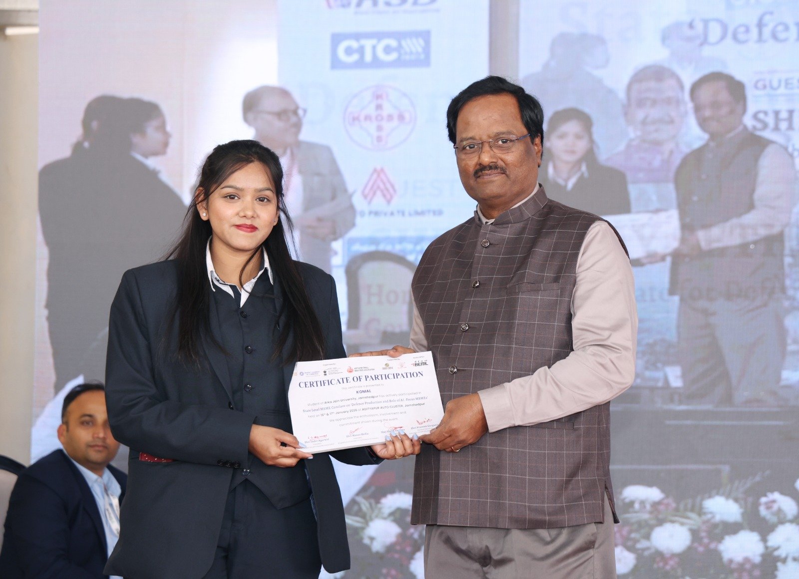 कॉन्क्लेव के दौरान रजिस्ट्रेशन प्रक्रिया को सुचारू रूप से संचालित करने वाले आर्का जैन यूनिवर्सिटी (AJU) के छात्रों की भी सराहना की गई। इन स्वयंसेवक छात्रों को सत्र के दौरान “पार्टिसिपेशन सर्टिफिकेट” देकर सम्मानित किया गया।