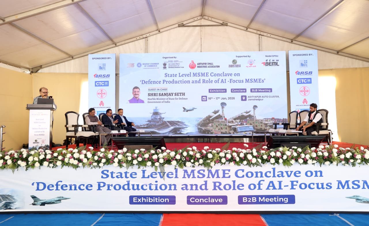 Adityapur (आदित्यपुर) : आदित्यपुर ऑटो क्लस्टर में आयोजित दो दिवसीय ‘एमएसएमई डिफेंस कॉन्क्लेव-2026’ के दूसरे दिन ‘तकनीकी सत्र-II’ का सफलतापूर्वक आयोजन किया गया। इस सत्र का मुख्य केंद्र सूक्ष्म, लघु और मध्यम उद्यमों (MSME) को रक्षा क्षेत्र की बड़ी कंपनियों के साथ व्यापारिक तालमेल बिठाने और स्वदेशीकरण की प्रक्रिया से जोड़ना था।