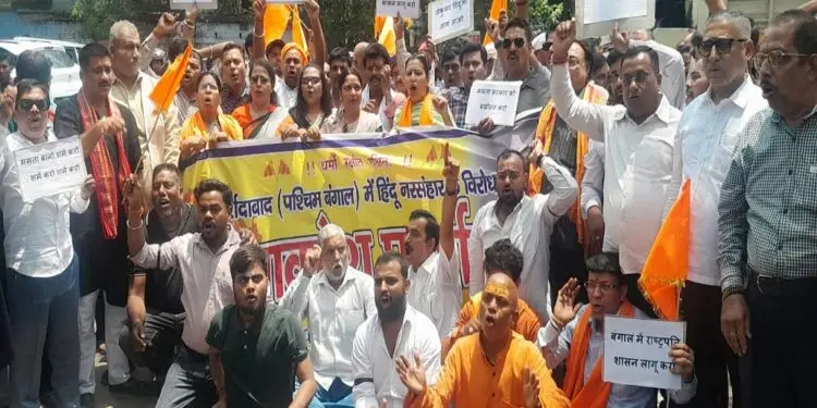जिले के डीसी के माध्यम से राष्ट्रपति के नाम पर सौंपे गए ज्ञापन में प्रदर्शनकारियों ने पश्चिम बंगाल में राष्ट्रपति शासन लगाने की मांग की है. डीसी ऑफिस पर प्रदर्शन करने के लिए पहुंचे लोग जुलूस की शक्ल में पहुंचे हुए थे और अपना आक्रोश व्यक्त किया.