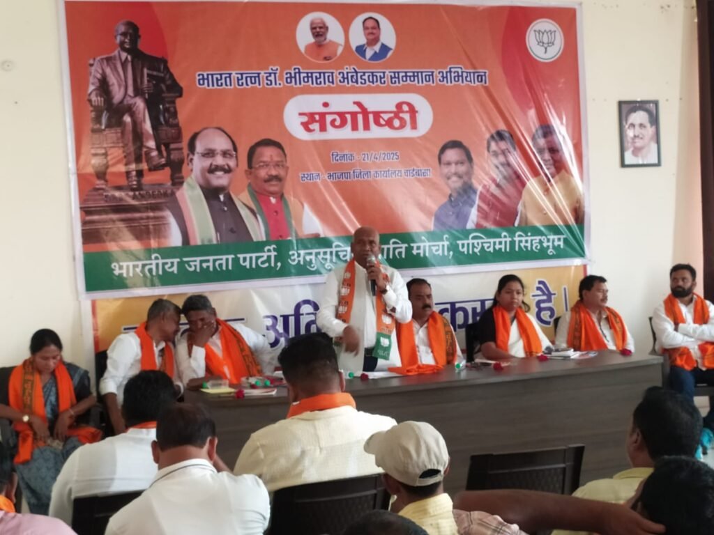 Chaibasa (चाईबासा) : भारत रत्न डॉ. भीमराव अंबेडकर सम्मान अभियान के अंतर्गत स्थानीय स्तर पर एक संगोष्ठी का आयोजन किया गया. जिसमें विभिन्न जनप्रतिनिधियों और नेताओं ने डॉ. अंबेडकर के योगदान, उनके विचारों की प्रासंगिकता और वर्तमान मोदी सरकार द्वारा किए गए कार्यों पर अपने विचार रखे.