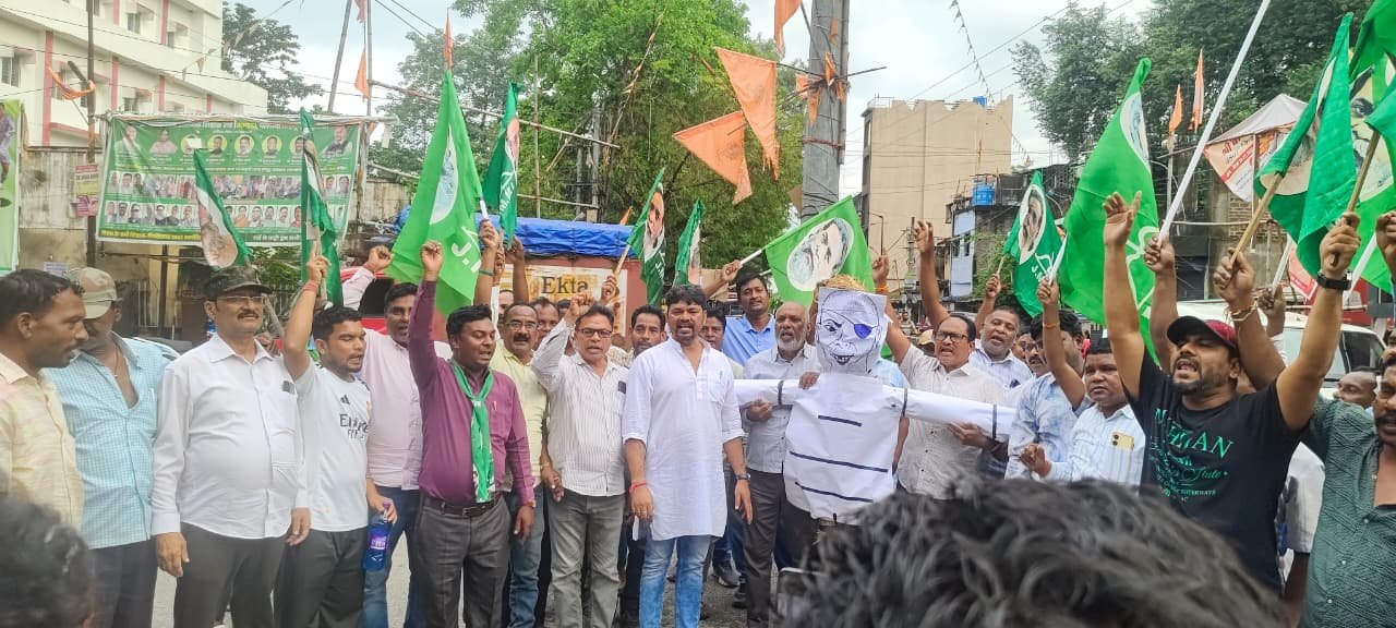 Chaibasa (चाईबासा) : केन्द्र सरकार के विरुद्ध जिला झामुमो ने पुतला दहन कर विरोध प्रदर्शन किया. इस मौके पर झामुमो जिला अध्यक्ष सोनाराम देवगम ने कहा कि भाजपा सरकार ने एक काला कानून लाकर देश में विपक्षी दल के सरकार को अस्थिर करने का षड्यंत्र रच रहे हैं. जिसकी मंशा पूरी नहीं होने दी जाएगी. देश के विभिन्न प्रदेशों में जो गैर भाजपा सरकार है उनके खिलाफ में एक राजनीतिक हथियार के तौर पर इस्तेमाल करने के उद्देश्य से उसे काला कानून को उसे विधेयक को लाने का काम किया है.