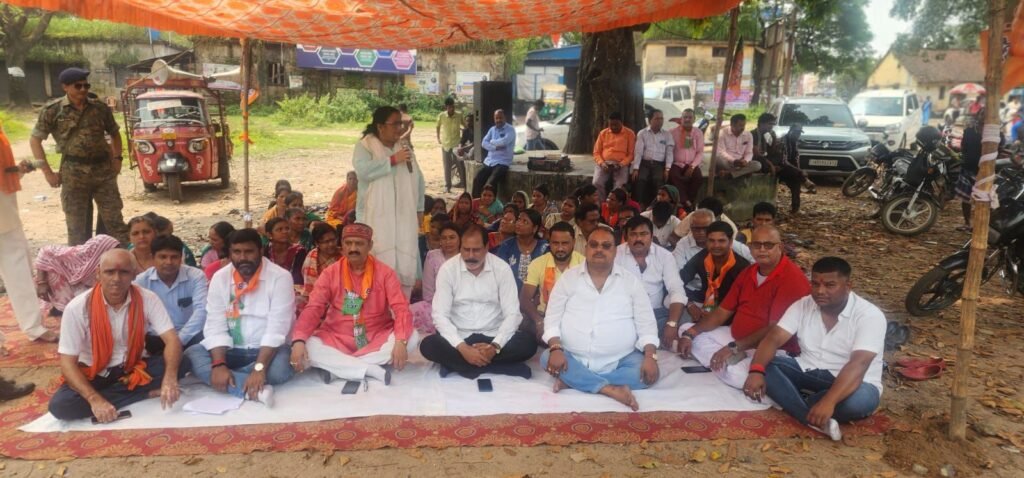 भाजपा नेता सह आदित्यपुर नगर निगम के निवर्तमान उप महापौर अमित सिंह बॉबी ने आरोप लगाया कि हेमंत सरकार के इशारे पर आदिवासी नेता सूर्य हांसदा का फर्जी एनकाउंटर किया गया है। साथ ही, नगड़ी में रिम्स-2 के नाम पर आदिवासी रैयती जमीन हड़पने की साजिश रची जा रही है। धरना प्रदर्शन के दौरान भाजपा के नेताओं ने कहा कि झारखंड सरकार लगातार आदिवासी विरोधी नीति अपना रही है और निर्दोषों को निशाना बना रही है। वहीं, आदिवासी समाज की जमीन को जबरन अधिग्रहण करने की साजिश किसी भी हाल में बर्दाश्त नहीं की जाएगी।धरना प्रदर्शन के दौरान कार्यकर्ताओं ने हेमंत सरकार के खिलाफ नारेबाजी की और आदिवासी हितों की रक्षा के लिए निर्णायक लड़ाई लड़ने का संकल्प लिया।