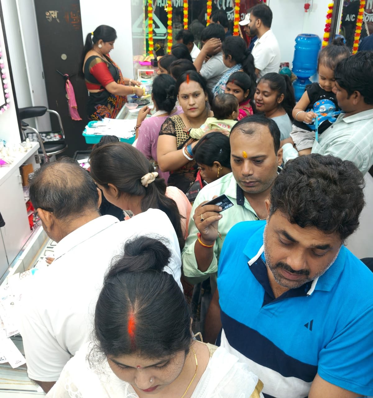 गम्हरिया। धनतेरस के शुभ अवसर पर गम्हरिया स्थित निर्मला ज्वेलर्स में ग्राहकों की भारी भीड़ उमड़ी। दुर्गा पूजा मैदान, शालिग्राम स्वीट्स के बगल में स्थित इस प्रतिष्ठान में धनतेरस के मौके पर विशेष ऑफर के तहत चांदी के आभूषणों पर मेकिंग चार्ज पूरी तरह फ्री रखा गया है, जबकि सोने के आभूषणों पर मात्र 12% मेकिंग चार्ज लिया जा रहा है।
