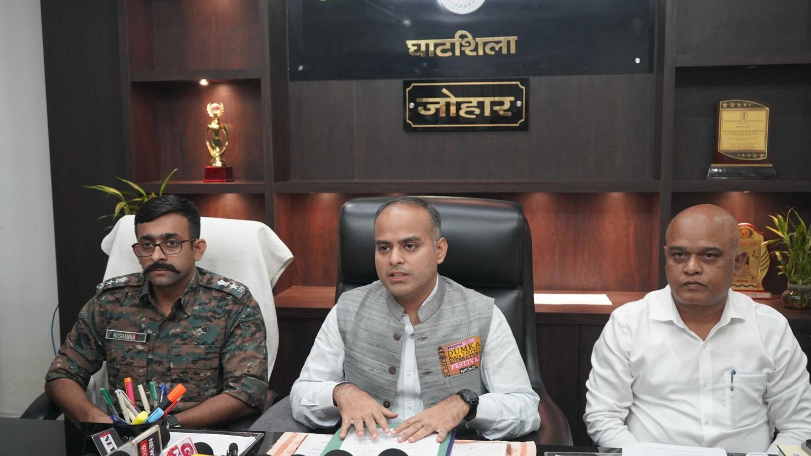 जमशेदपुर/घाटशिला संवाददाता। 45-घाटशिला (अ.ज.जा) विधानसभा उप निर्वाचन 2025 का मतदान प्रक्रिया शांतिपूर्ण, सुव्यवस्थित एवं निष्पक्ष वातावरण में सम्पन्न हुआ। निर्वाचन के सफल समापन के उपरांत जिला निर्वाचन पदाधिकारी–सह–उपायुक्त श्री कर्ण सत्यार्थी ने अनुमंडल कार्यालय, घाटशिला में प्रेस वार्ता की। इस दौरान ग्रामीण पुलिस अधीक्षक श्री ऋषभ गर्ग, निर्वाची पदाधिकारी सह एसडीओ श्री सुनील चन्द्र सहित अन्य पदाधिकारी उपस्थित रहे।