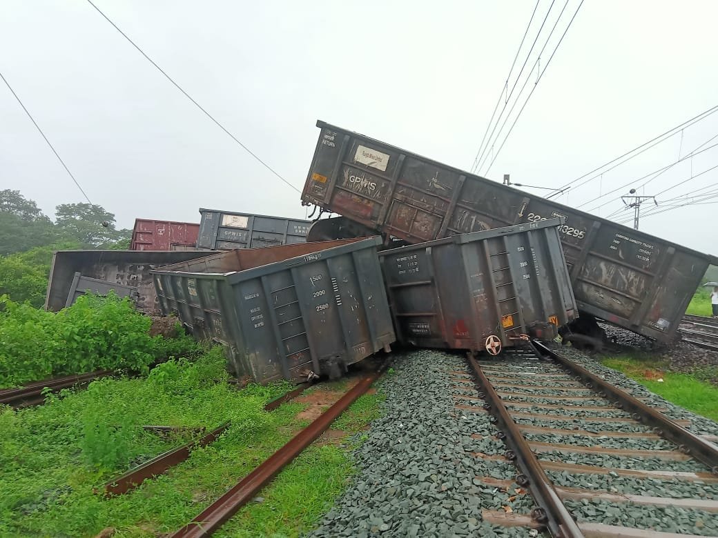 Chaibasa :- पश्चिमी सिंहभूम जिले के चक्रधरपुर रेल डिविजन के डांगुवापोसी में मंगलवार की सुबह 10 बजे थर्ड लाइन पर मालगाड़ी बेपटरी हो गई. इस दुर्घटना में मालगाड़ी के कई डिब्बे पटरी से नीचे उतरकर पलट गए है.