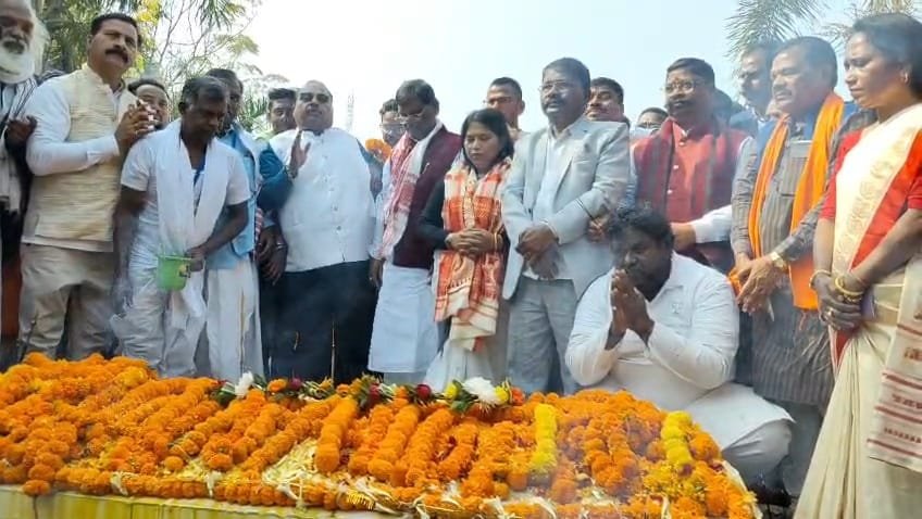 खरसावां (झारखंड): पूर्व केंद्रीय मंत्री एवं वरिष्ठ भाजपा नेता अर्जुन मुंडा ने गुरुवार को खरसावां शहीद स्थल पहुंचकर वर्ष 1948 के ऐतिहासिक गोलीकांड में शहीद हुए वीर आदिवासियों को भावभीनी श्रद्धांजलि अर्पित की। इस अवसर पर उनके नेतृत्व में खिलारी साईं से शहीद स्थल तक एक विशाल रैली निकाली गई, जिसमें बड़ी संख्या में भाजपा कार्यकर्ता एवं स्थानीय लोग शामिल हुए।