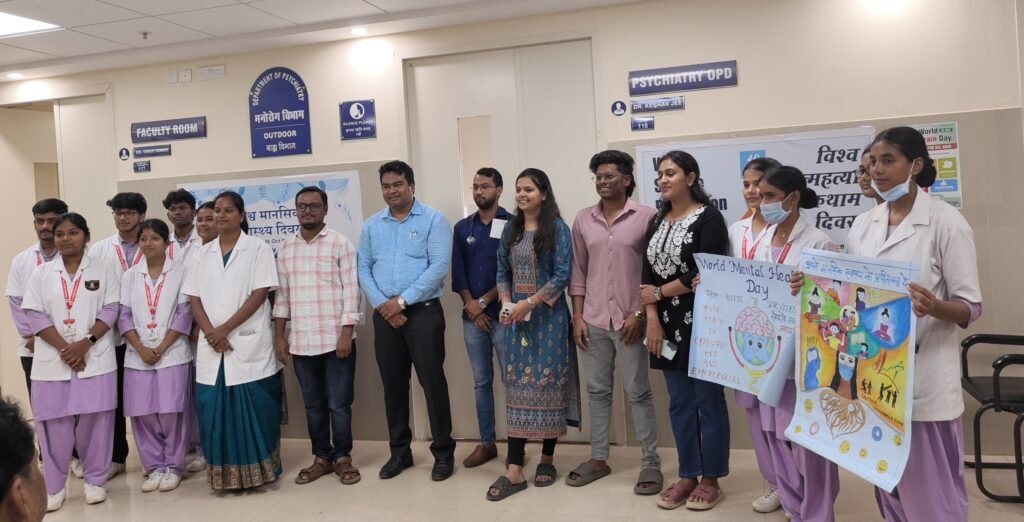 जमशेदपुर। विश्व मानसिक स्वास्थ्य दिवस के अवसर पर गांधी कॉलेज ऑफ नर्सिंग, आदित्यपुर के बी.एससी. नर्सिंग द्वितीय सेमेस्टर के छात्रों ने एमजीएम मेडिकल कॉलेज एवं अस्पताल (एमजीएमएमसीएच) में जागरूकता कार्यक्रम का आयोजन किया। इस आयोजन का उद्देश्य मानसिक स्वास्थ्य को लेकर समाज में जागरूकता बढ़ाना और मानसिक बीमारियों से जुड़े सामाजिक कलंक को कम करना था।