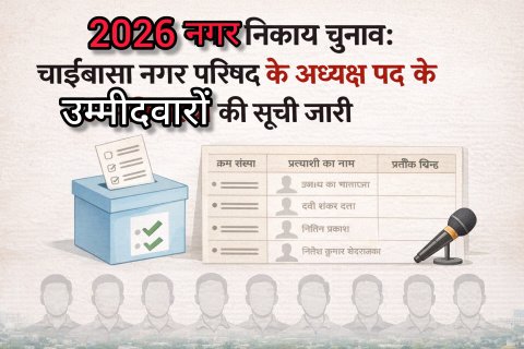 Chaibasa (चाईबासा): आगामी नगर निकाय चुनाव 2026 के लिए चाईबासा नगर परिषद में चुनावी सरगर्मियां तेज हो गई हैं। जिला निर्वाचन कार्यालय ने निर्वाचन नियम 43 एवं 44 के तहत अध्यक्ष पद के लिए कुल 9 उम्मीदवारों की सूची और उनके आवंटित चुनाव चिन्ह जारी कर दिए हैं।