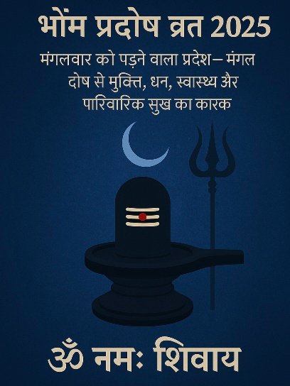 नई दिल्ली : हिंदू धर्म में प्रदोष व्रत का अत्यंत विशेष महत्व है। यह व्रत भगवान शिव को प्रसन्न करने वाला माना जाता है। प्रदोष व्रत प्रत्येक महीने की त्रयोदशी तिथि पर आता है और दिन के संध्या काल (प्रदोष काल) में शिव पूजन किया जाता है। वर्ष 2025 में कई प्रदोष व्रत आएंगे, जिनमें से भौम प्रदोष विशेष फलदायी माना गया है, क्योंकि यह मंगलवार के दिन पड़ने वाली त्रयोदशी को कहा जाता है। मंगलवार का संबंध मंगल ग्रह (Mars) से है, जो ऊर्जा, साहस, भूमि, ऋण, विवाह, संबंध और स्वास्थ्य का कारक माना जाता है। इसलिए भौम प्रदोष व्रत करने से मंगल दोष, धन संकट, दांपत्य जीवन की समस्याएं और शत्रु बाधा दूर होती है।
