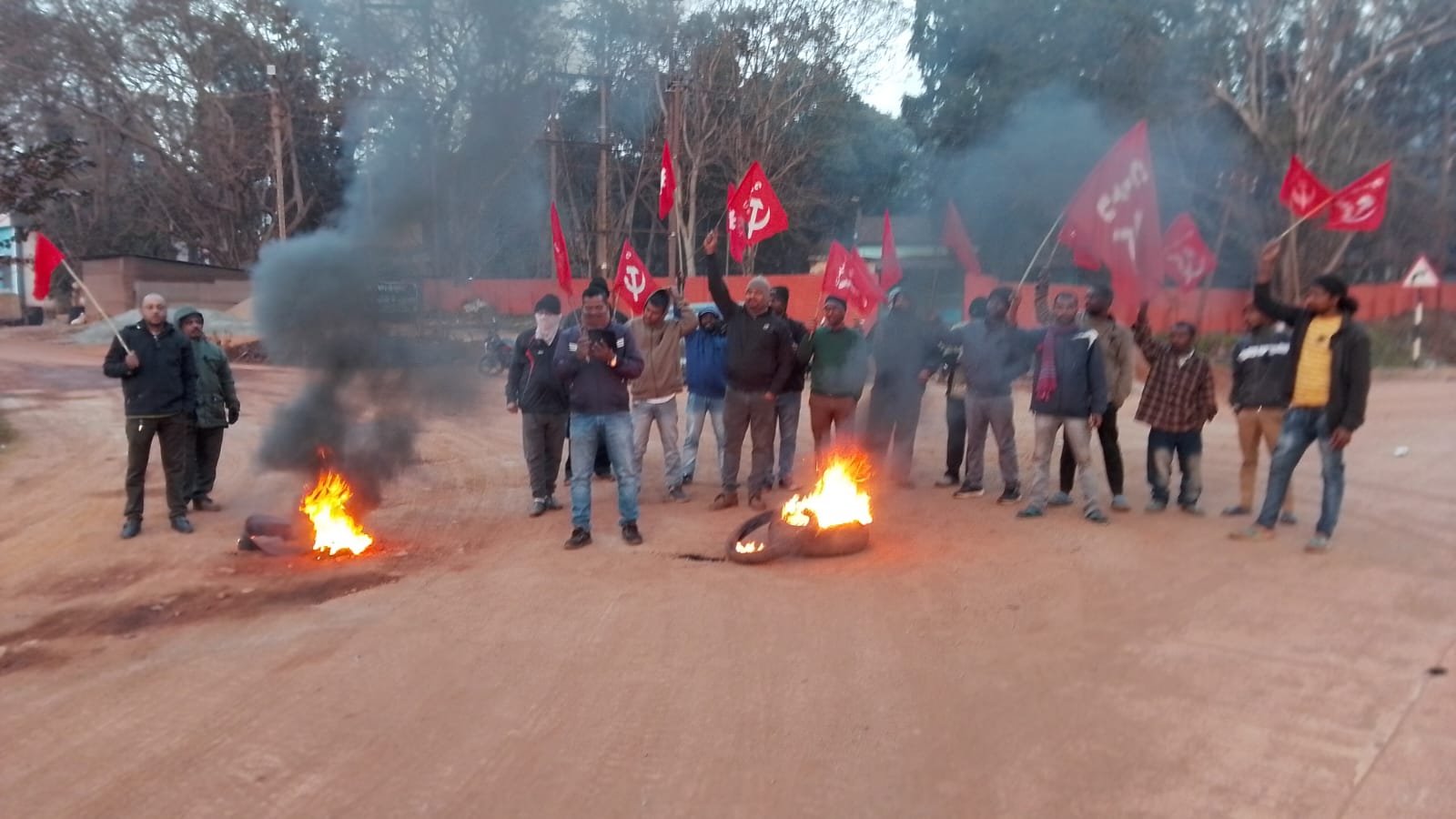 गुवा में सीटू एवं संयुक्त यूनियन का सड़क जाम, भारत बंद का समर्थन कर श्रम कानूनों के विरोध में प्रदर्शन