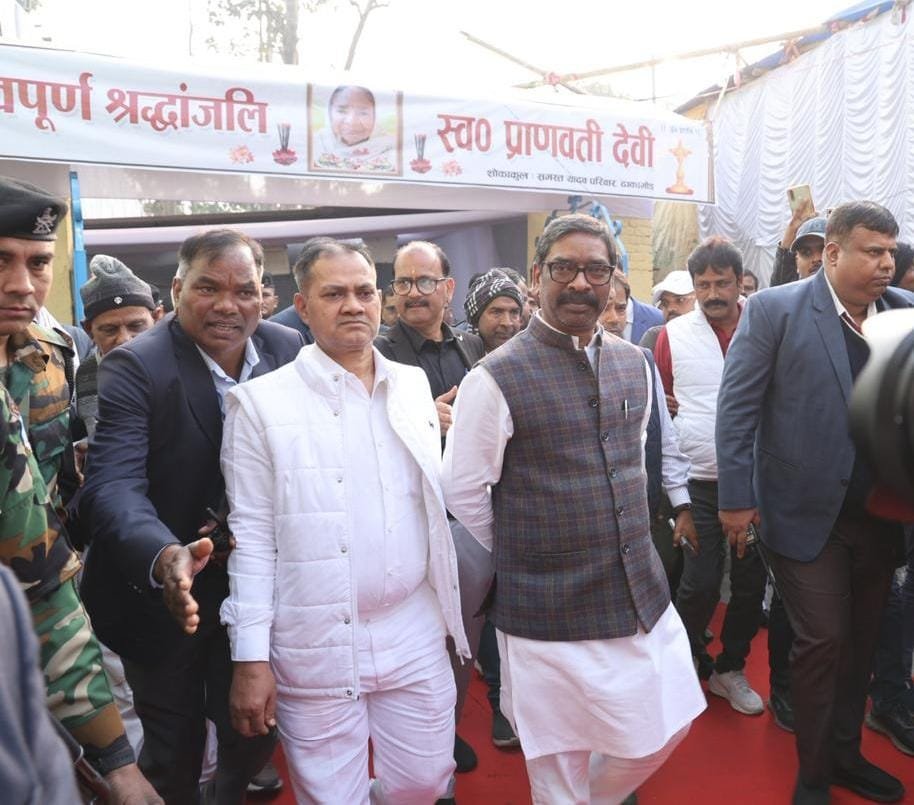 इस कार्यक्रम में विशेष रूप से झारखंड के मुख्यमंत्री हेमंत सोरेन पहुंचे। मुख्यमंत्री ने कार्यक्रम स्थल पर पहुंचते ही स्वर्गीय प्राणवती देवी के चित्र पर पुष्पांजलि अर्पित की और उन्हें भावभीनी श्रद्धांजलि दी। मुख्यमंत्री सोरेन काफी देर तक वहां रुके और शोकाकुल परिवार के सदस्यों से मुलाकात कर उन्हें ढांढस बंधाया। उन्होंने कहा कि मां का जाना एक ऐसी क्षति है जिसे कभी पूरा नहीं किया जा सकता, लेकिन इस कठिन समय में वे व्यक्तिगत रूप से और झारखंड सरकार पूरी तरह से संजय यादव के परिवार के साथ खड़ी है।