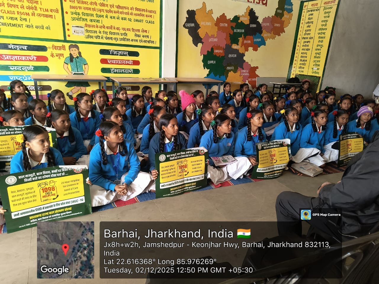 Saraikela (सरायकेला) : चाइल्ड हेल्पलाइन सरायकेला की ओर से बुधवार को राजनगर स्थित कस्तूरबा गांधी उच्च विद्यालय एवं राज्य संपोषित +2 उच्च विद्यालय में विद्यार्थियों के बीच बाल अधिकार एवं सुरक्षा संबंधी जागरूकता कार्यक्रम का आयोजन किया गया। कार्यक्रम का उद्देश्य बच्चों को उनके अधिकारों, सुरक्षा से जुड़े कानूनों तथा जरूरी सहायता सेवाओं के बारे में जागरूक करना था।