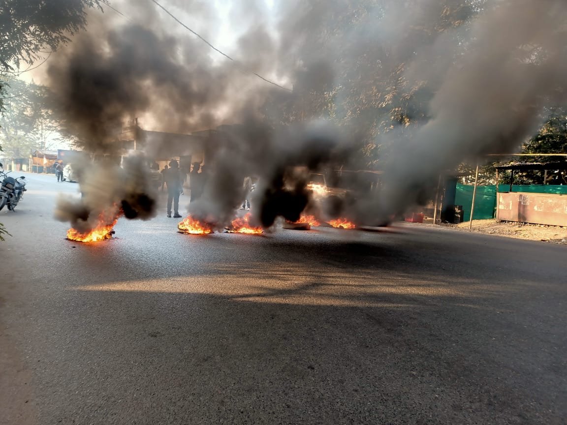 Jharkhand Band : टायर जलाकर सड़क बैठ विरोध जताते समर्थक