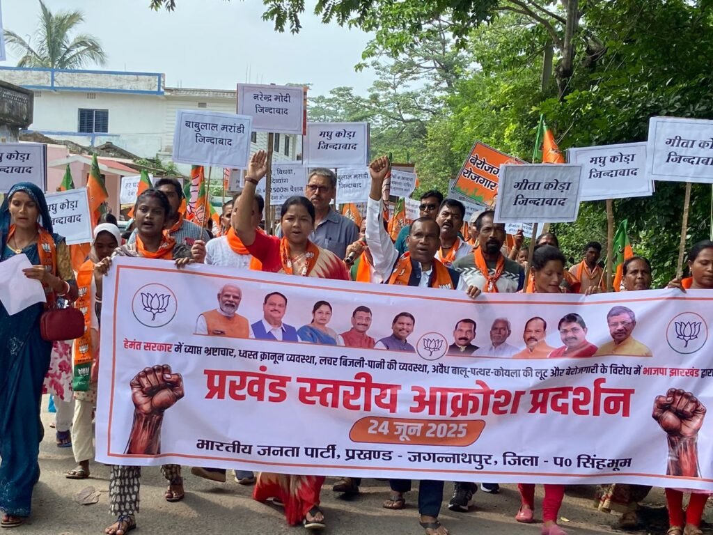 भाजपा प्रदेश नेतृत्व के निर्देशानुसार झारखंड सरकार के भ्रष्टाचार, खराब विधि व्यवस्था, योजनाओं की विफलता और आम जनता की समस्याओं के खिलाफ पश्चिमी सिंहभूम जिला के जगन्नाथपुर प्रखंड मुख्यालय में भारतीय जनता पार्टी द्वारा जोरदार धरना प्रदर्शन किया गया। जिसके बाद प्रखंड विकास पदाधिकारी को एक ज्ञापन सौपा।