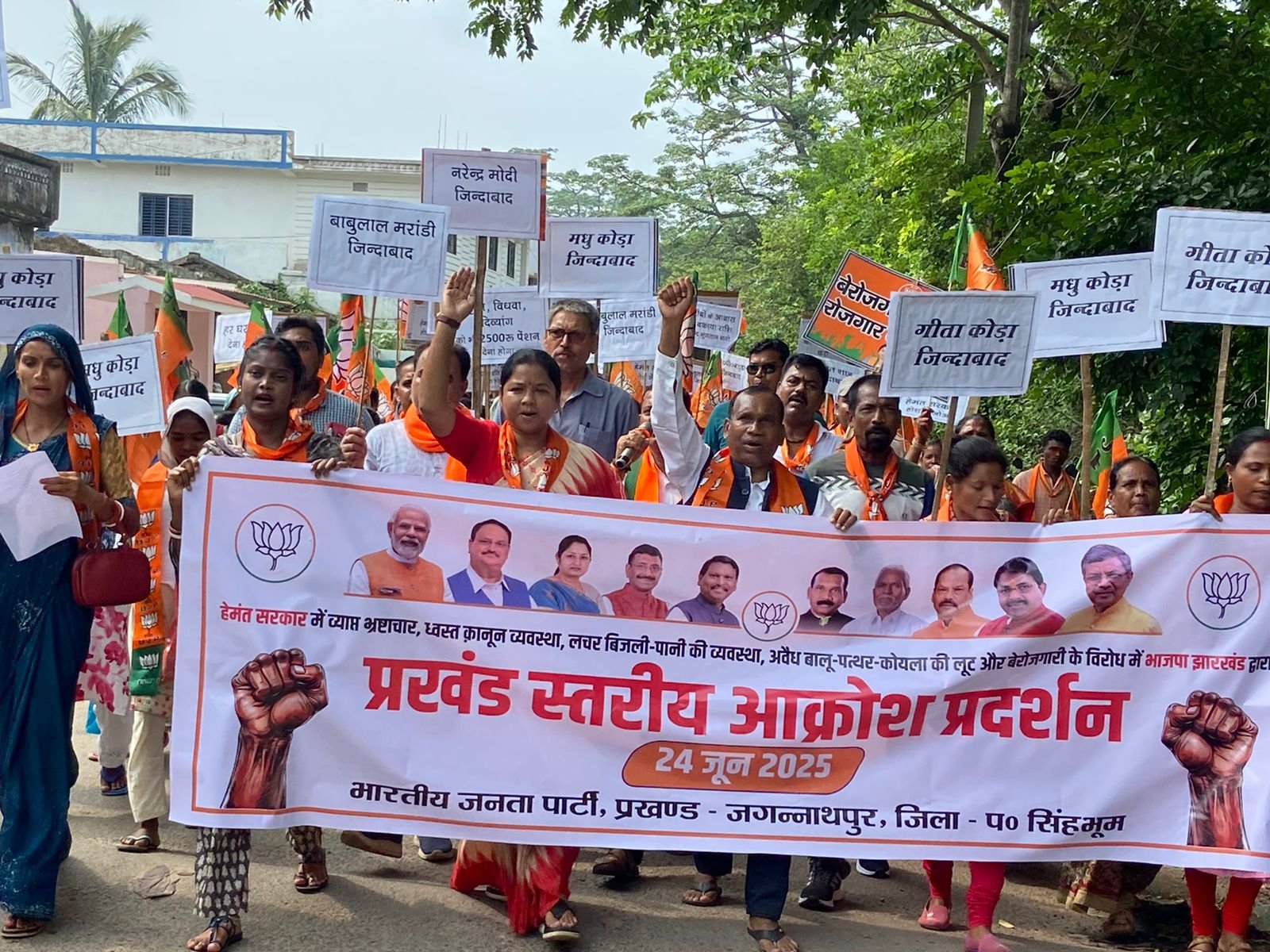 पूर्व मुख्यमंत्री मधु कोड़ा व पूर्व सांसद गीता कोड़ा ने कहा कि सरकार ने चुनाव में सभी बेरोजगारों को नौकारियाँ देगे, नौकरी नही तो भत्ता देने का बात किया था, जो अब तक सरकार ने वादा पुरा नही किया। झामुमो कांग्रेस राजद गठबंधन द्वारा झारखंड के युवाओं, माताओं व बहनों , युवाओं से राज्य की जनता से किये गए वादे पूर्ण करने में विफल नजर आ रही है। इन्ही सब मांगों को लेकर पुरे प्रदेश के विभिन्न प्रखंडो में आक्रोश प्रदर्शन कार्यक्रम आयोजित किया जा रहा है।