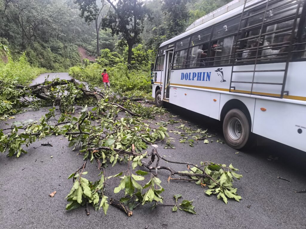 Gua (गुआ) : गुआ से मनोहरपुर जाने वाले मुख्य मार्ग पर रविवार रात से हो रही लगातार भारी वर्षा का असर बुधवार सुबह देखने को मिला. तेज बारिश और हवाओं के कारण एक बड़ा पेड़ सड़क पर गिर गया. जिससे आवागमन पूरी तरह से बाधित हो गया.
