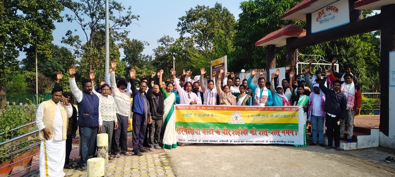 Chaibasa (चाईबासा) : चाईबासा में वर्ष 1837-38 के दौरान ब्रिटिश हुकूमत के खिलाफ हुई ऐतिहासिक लड़ाई एवं उससे जुड़ी वास्तविक तिथि 02 जनवरी को मानते हुए सेरेंगसिया घाटी के शहीदों को श्रद्धांजलि अर्पित की गई। इस अवसर पर आदिवासी समाज के विभिन्न संगठनों ने अभियान चलाकर शहीदों को नमन किया।