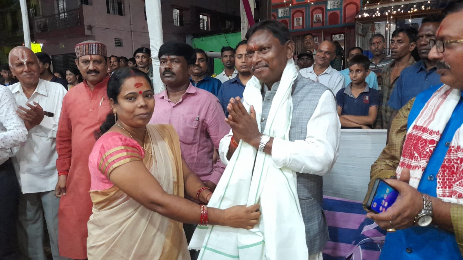 केंद्रीय मंत्री अर्जुन मुंडा का स्थानीय वार्ड पार्षद रिंकू राय ने पुष्पगुच्छ और शॉल ओढाकर स्वागत किया. इस मौके पर नवयुवक दुर्गा पूजा कमेटी के अध्यक्ष निरंजन मिश्रा ने भी केंद्रीय मंत्री का शॉल ओढाकर स्वागत और अभिनंदन किया. इस मौके पर अपने संबोधन में केंद्रीय मंत्री अर्जुन मुंडा ने कहा कि 2 अक्टूबर के दिन पूरा राष्ट्र राष्ट्रपिता महात्मा गांधी की जयंती मनाता है. जहां राष्ट्रपिता ने प्राण त्याग ने के समय उनके मुंह से “हे राम” निकला था. जिसे प्रधानमंत्री नरेंद्र मोदी ने कुछ इस प्रकार आत्मसात किया कि आज अयोध्या में भव्य राम मंदिर का निर्माण हो रहा है. केंद्रीय मंत्री अर्जुन मुंडा ने कहा कि देश आजादी का 75 वां अमृत महोत्सव मना रहा है. आगे चलकर हम 100 वी वर्षगांठ भी मनाएंगे. लेकिन इसमें सबसे ज्यादा महत्वपूर्ण है कि इन पर्व त्योहारों के आयोजन से पौराणिक परंपरा का निर्वहन करते हुए हम भारत को विकसित राष्ट्र बनाएं.