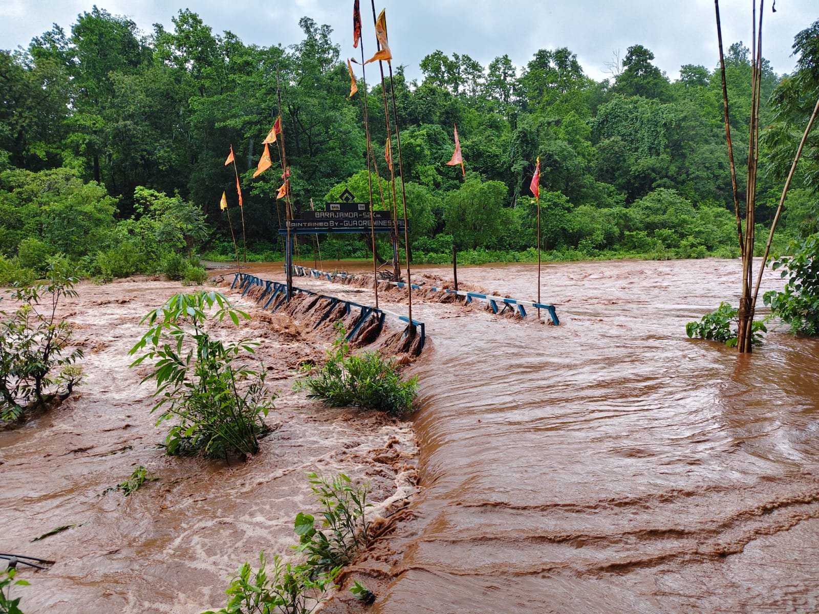 लगातार हो रही बारिश से जीवन अस्त व्यस्त, पुल के ऊपर से बह रहा पानी