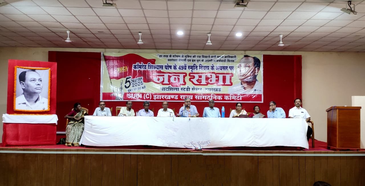 Chaibasa (चाईबासा) : हर तरह के शोषण से मुक्ति की राह दिखाने वाले महान क्रांतिकारी स्वतंत्रता सेनानी एवं इस युग के अग्रणी मार्क्सवादी चिंतक” कामरेड शिवदास घोष की 49वीं स्मृति दिवस के अवसर पर SUCI (C) झारखंड राज्य संगठनी कमेटी के बैनर तले घाटशिला के मार्क्सवाद-लेलिनवाद-शिवदास घोष विचारधारा अध्ययन केंद्र में एक भव्य जनसभा का आयोजन किया गया। जिसमें राज्य भर के आम जनता बुद्धिजीवियों के साथ पश्चिम सिंहभूम की जनता भी शामिल हुए.