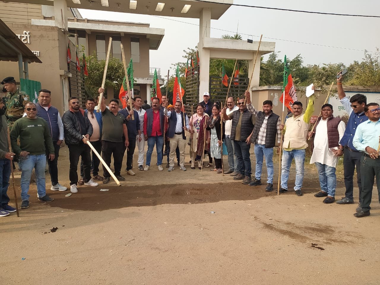 चाईबासा। कांग्रेस पार्टी द्वारा भाजपा कार्यालय पर किए गए उकसावेपूर्ण प्रदर्शन का भारतीय जनता पार्टी के नेताओं एवं कार्यकर्ताओं ने संगठित और दृढ़ प्रतिकार किया। जिला अध्यक्ष संजय पांडे के नेतृत्व में पहले से सतर्क भाजपा कार्यकर्ताओं ने कांग्रेस की अराजक गतिविधियों को विफल करते हुए उन्हें भाजपा कार्यालय के मुख्य द्वार से बाहर कर दिया।